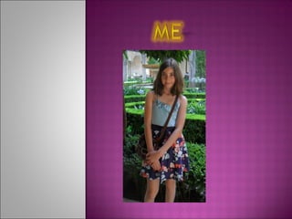 The document introduces the narrator's family members, which includes two brothers, five cousins, and grandparents with various names. It also lists the narrator's hobbies as rhythmic gymnastics, horseback riding, and painting. Additionally, it states that the narrator is 11 years old with brown straight short hair and brown eyes.
