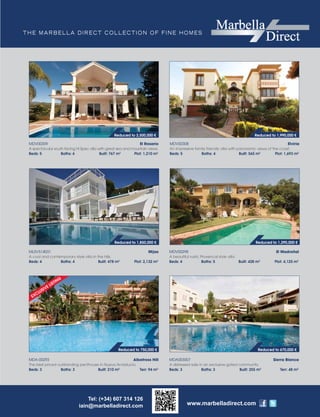 This document contains listings for properties for sale in Tarifa, Spain and the surrounding areas. It includes historical buildings in Casco Antiguo for 1.95 million Euros, a modern villa in Atlanterra with ocean views for 975,000 Euros, and a beachfront apartment in Los Lances for 210,000 Euros. The listings show details like the number of beds and baths, square footage, and reduced prices. The document promotes properties in Tarifa and the Marbella area through Marbella Direct.
