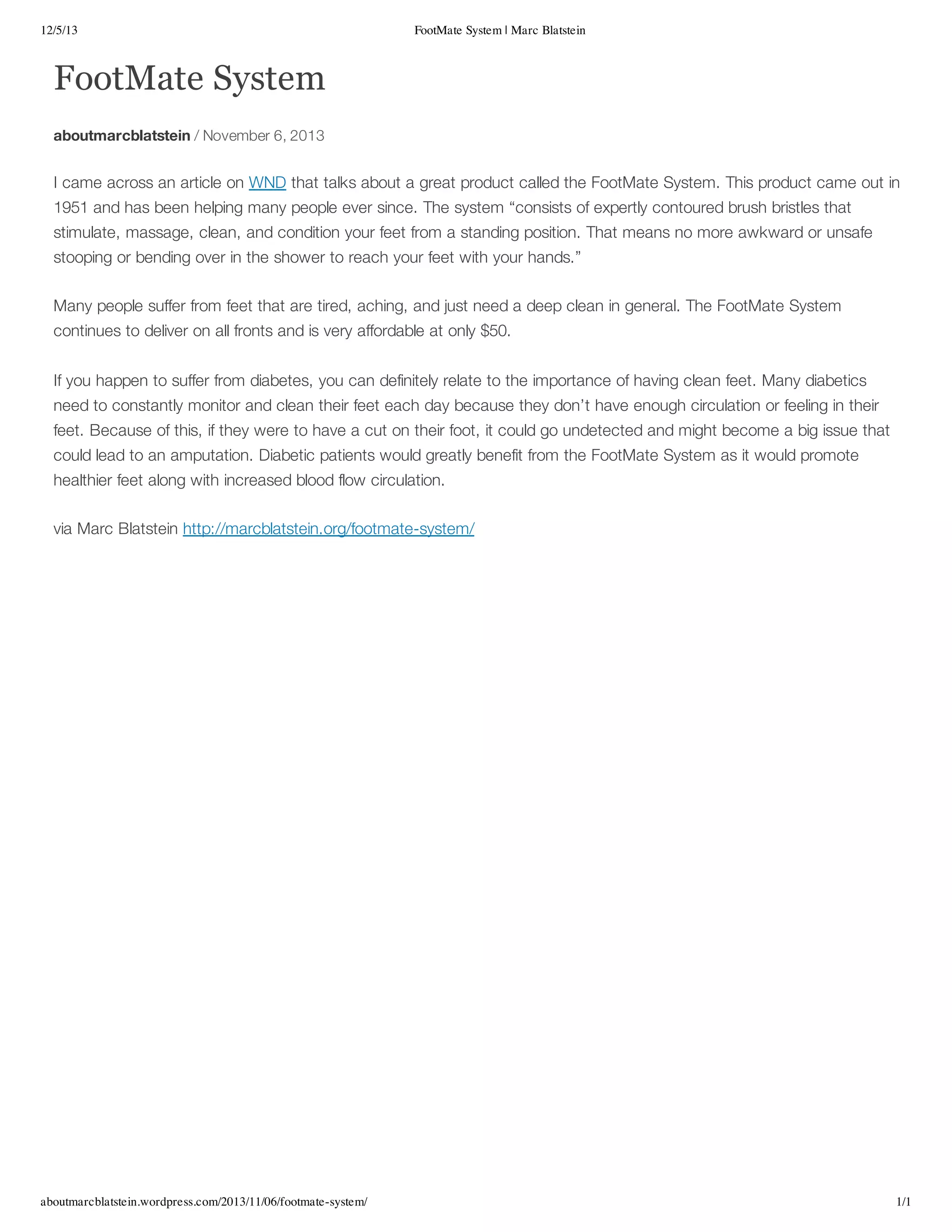 Marc Blatstein writes about the well known FootMate System.