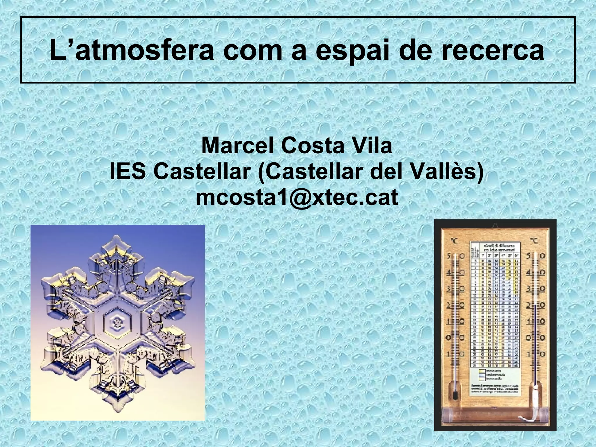 L’atmosfera com aespai de recerca Marcel Costa Vila IES Castellar (Castellar del Vallès) [email_address]