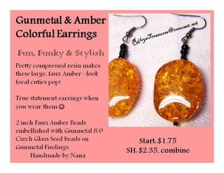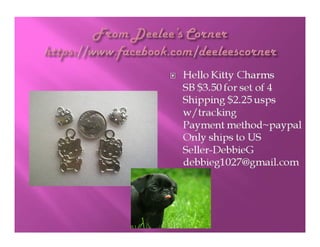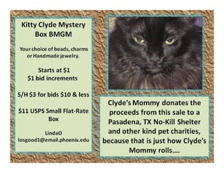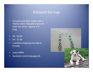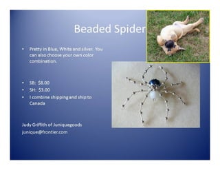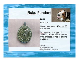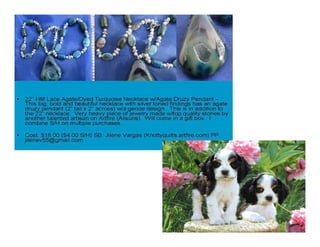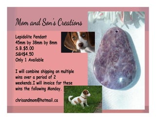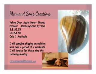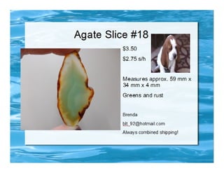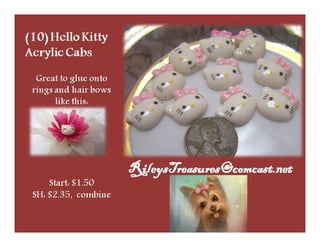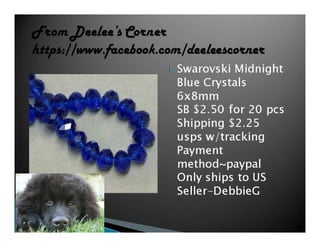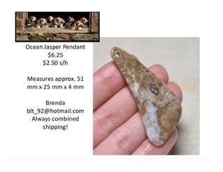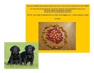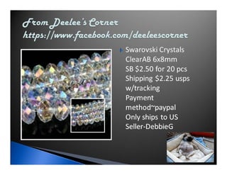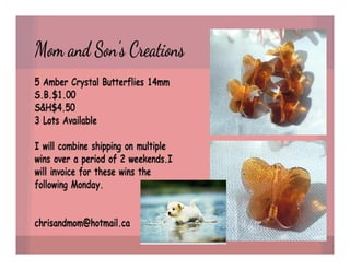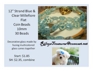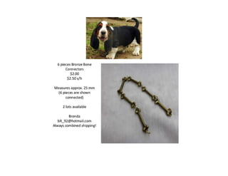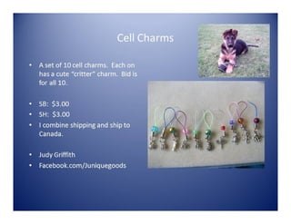 The document lists various crafting beads, charms, and jewelry-making supplies available for auction with starting bids, shipping costs, and seller contact information. Items include agate beads, glass strands, and antique bronze charms, with details on sizes and quantities. The auction opens on Sunday, March 23rd, at specified times.