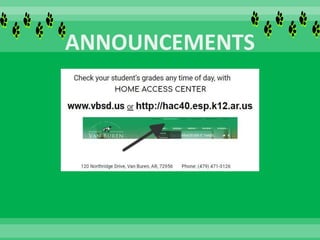 This document contains the weekly school lunch menus and other announcements for Northridge Middle School. The menus list the breakfast and lunch options for each day of the week, including main dishes, sides, fruits and milks. Other announcements include information about drop off/pick up locations, bus routes, supply lists, bell schedules, payment methods and various extracurricular activities and events happening at the school.