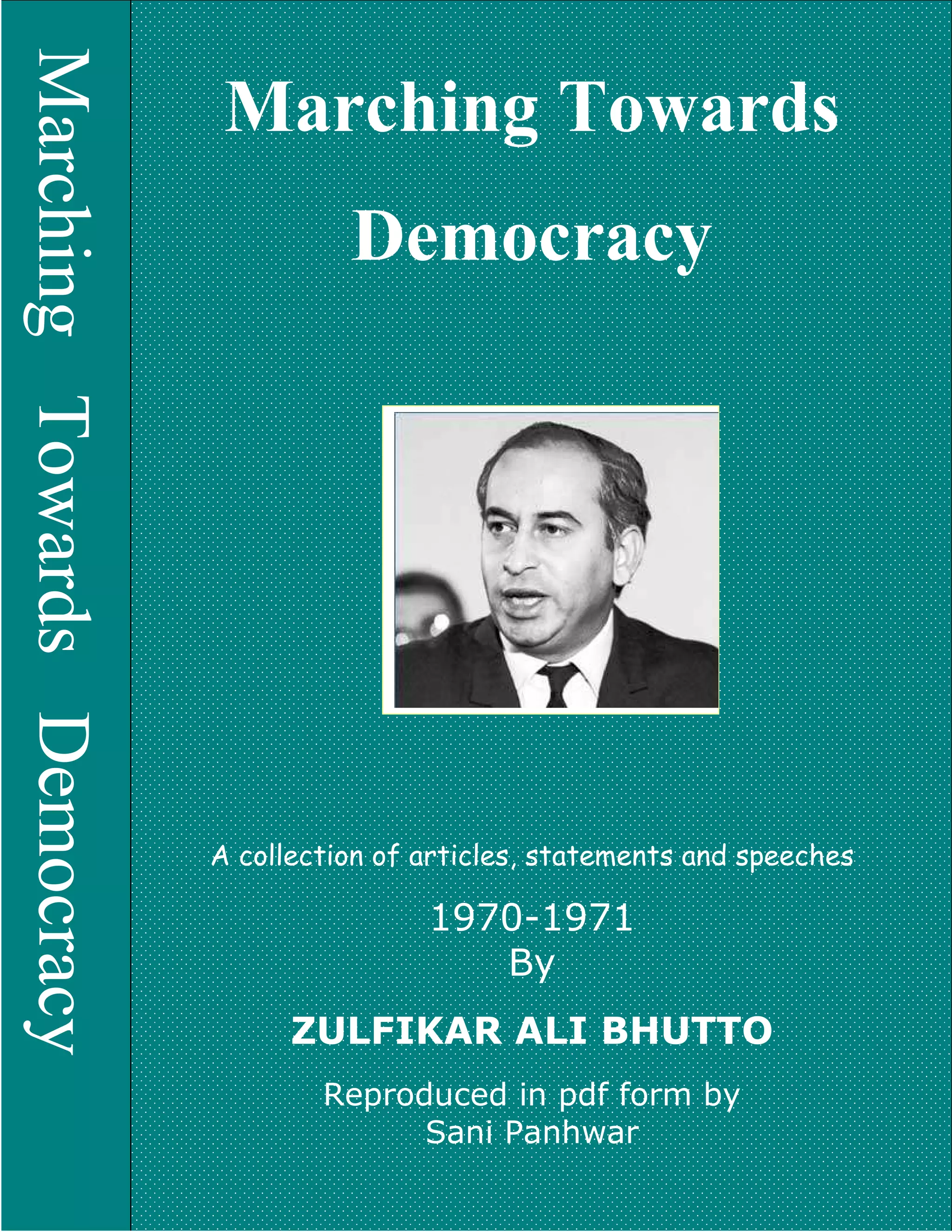 This document is an introduction to a collection of speeches by Zulfikar Ali Bhutto from 1970-1971 as Pakistan was transitioning from military rule to democracy. The introduction provides background on Ayub Khan resigning as President and handing power to General Yahya Khan. It then summarizes some of Bhutto's key speeches and policies during this time period, including advocating for Islamic socialism, opposing military rule, and campaigning for democracy and economic reforms to help the poor and working classes. Bhutto and his Pakistan People's Party swept elections in West Pakistan due to their message and inclusion of candidates from all classes.