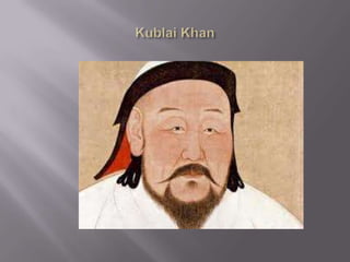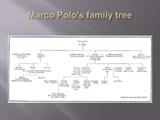 Marco Polo was born in Venice in 1254 and traveled to China with his merchant father Niccolo Polo and uncle between 1271-1275, where he met Kublai Khan and explored the Mongol Empire for 17 years before returning to Venice in 1295. He died in Venice on January 8, 1324 at age 69, after having married and had three daughters. Marco Polo is most famous for the account of his travels, experiences, and observations in China that he documented in his book "The Travels of Marco Polo", which helped introduce Europeans to China and the Far East.