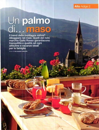 Il documento descrive l'Arbatax Park Resort, situato in una penisola privata in Sardegna, evidenziando le opportunità per vacanze in un ambiente naturale e accogliente. Inoltre, discute le tendenze delle vacanze estive degli italiani, suggerendo destinazioni come il Salento e il Sulcis, che offrono bellezze naturali e prezzi vantaggiosi. Viene anche menzionato un catalogo che accompagna il lettore in un viaggio attraverso le meraviglie della Sicilia.