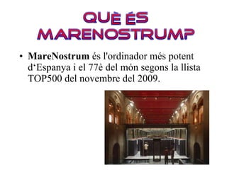 MareNostrum ésl'ordinador més potent d‘Espanya i el 77è del món segons la llista TOP500 del novembre del 2009.