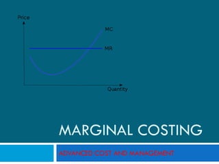 This document provides an overview of marginal costing and cost-volume-profit (CVP) analysis. It defines key terms like marginal cost, contribution, fixed and variable costs. It explains the differences between marginal and absorption costing approaches. The objectives and concepts of CVP analysis are outlined, including break-even point, margin of safety, contribution ratio and angle of incidence. Formulas for calculating items like break-even sales, break-even point and composite break-even point are presented. Advantages and limitations of marginal costing are listed.
