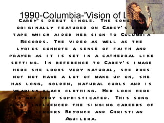 Mariah Carey is an American singer, songwriter, record producer and actress born in 1970. She moved to New York City at age 17 to pursue a career in music. Her demo tape was given to Tommy Mottola, then head of Columbia Records, who signed her immediately. Carey went on to become one of the best-selling female artists of the 1990s, known for her wide vocal range and signature whistle register. With a career spanning over two decades, she has won numerous awards and is considered one of the best-selling music artists ever with over 200 million records sold worldwide.