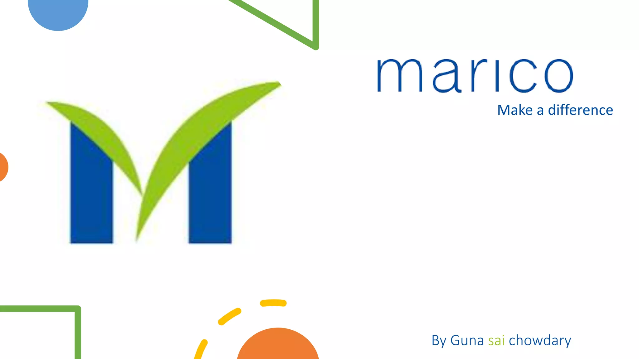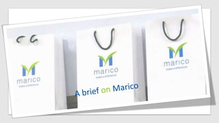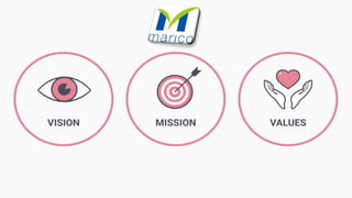 This document provides an overview of Marico Limited, an Indian consumer goods company. It discusses Marico's history dating back to 1862, its global network with a presence in 25 countries, and some of its popular brands in India such as Parachute, Saffola, Revive, and Beardo. It also covers Marico's marketing strategies including segmentation, targeting, positioning, and its marketing mix of 7Ps. Key aspects of Parachute such as its product positioning and market segmentation are analyzed. Porter's five forces and PESTLE analysis are also presented. The document concludes with information about competition and legal challenges faced by Marico.