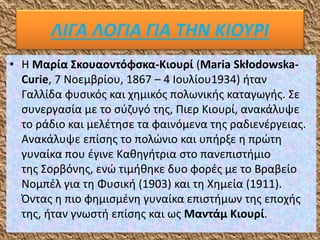 Curie, 7 Νοεμβρίου, 1867 – 4 Ιουλίου1934) ήταν
