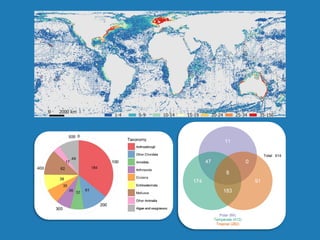 The document discusses the modeling of marine species distributions, particularly focusing on invasive seaweeds in European waters. It highlights the challenges posed by data quality, geographical variability, and the predictive modeling of species distributions using various environmental and biological predictors. Future perspectives include improving data accessibility and understanding biotic interactions to enhance marine species modeling.