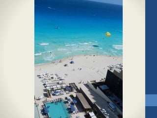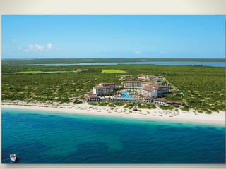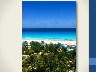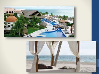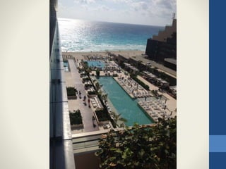The document provides details on vacation options in Cancun, Mexico between October 27th-31st. It includes information on three resort options: Secrets The Vine, Secrets Playa Mujeres, and Live Aqua. Each resort is all-inclusive, offers ocean view rooms, swimming pools, restaurants, bars, and amenities like spas. Secrets The Vine is an adult-only 5-star resort located on a beach with 495 rooms and 12 swimming pools. Secrets Playa Mujeres is a new 4.5 star adult-only resort located near golf courses with suites and two pools. Live Aqua is also 4.5 stars, adult-only and features unique pools, a spa