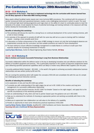 This document provides information about an upcoming conference on maritime lifecycle management, including: