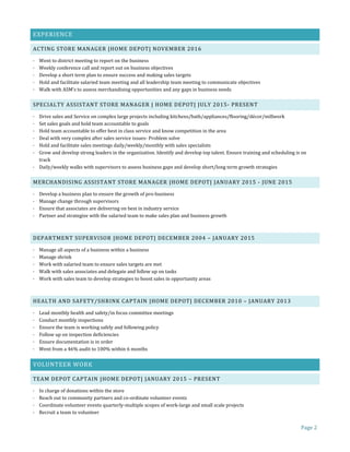 Mark Baranowski has over 12 years of experience in sales and management roles at Home Depot, currently serving as an Assistant Store Manager. He holds a Bachelor's degree in Psychology and has a proven track record of driving sales through strategic planning, communication, and holding teams accountable to goals. Baranowski's expertise includes managing teams of up to 200 employees, developing talent pipelines, and coordinating large events and training.