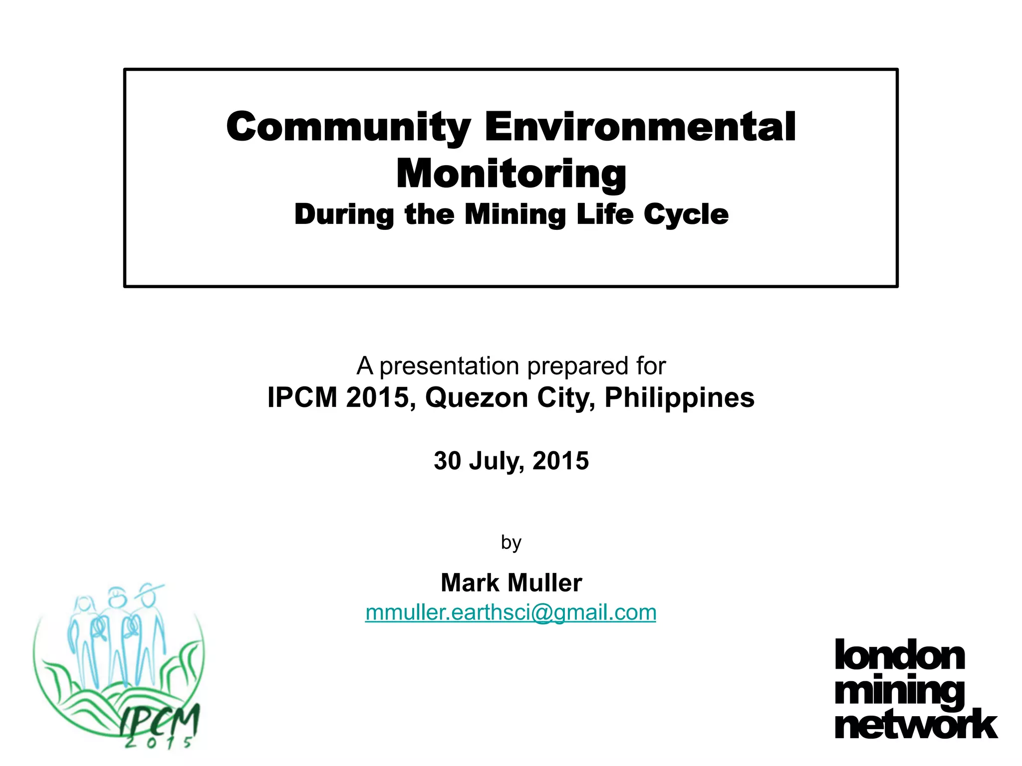 The document discusses community environmental monitoring during different stages of the mining life cycle. It provides details on the potential environmental impacts of exploration, construction, operation, and closure/rehabilitation. Specifically, it describes how early exploration involves low-impact activities like mapping and sampling but can progress to trenching and drilling, which can cause landscape scarring and erosion. Drilling involves toxic mud and cuttings that risk contaminating rivers if not properly contained. Large-scale open pit mining transforms landscapes and disrupts drainage, while waste rock dumps and tailings dams can generate acid mine drainage that pollutes surface and groundwater for decades. The document stresses the importance of community monitoring from the earliest exploration stages to detect and address environmental issues before severe