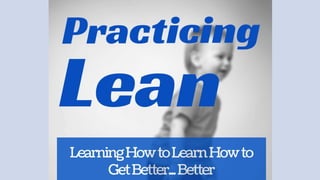 This document discusses the speaker's reflections on 20 years of trying to implement and practice Lean in manufacturing and healthcare settings. It shares many of the mistakes and lessons learned during that time, including implementing the wrong tools for the culture, not sustaining gains from improvement efforts, and not adopting a continuous improvement mindset. The goal is to encourage others learning Lean by sharing these experiences in order to help people avoid similar pitfalls and get better at continuously improving.