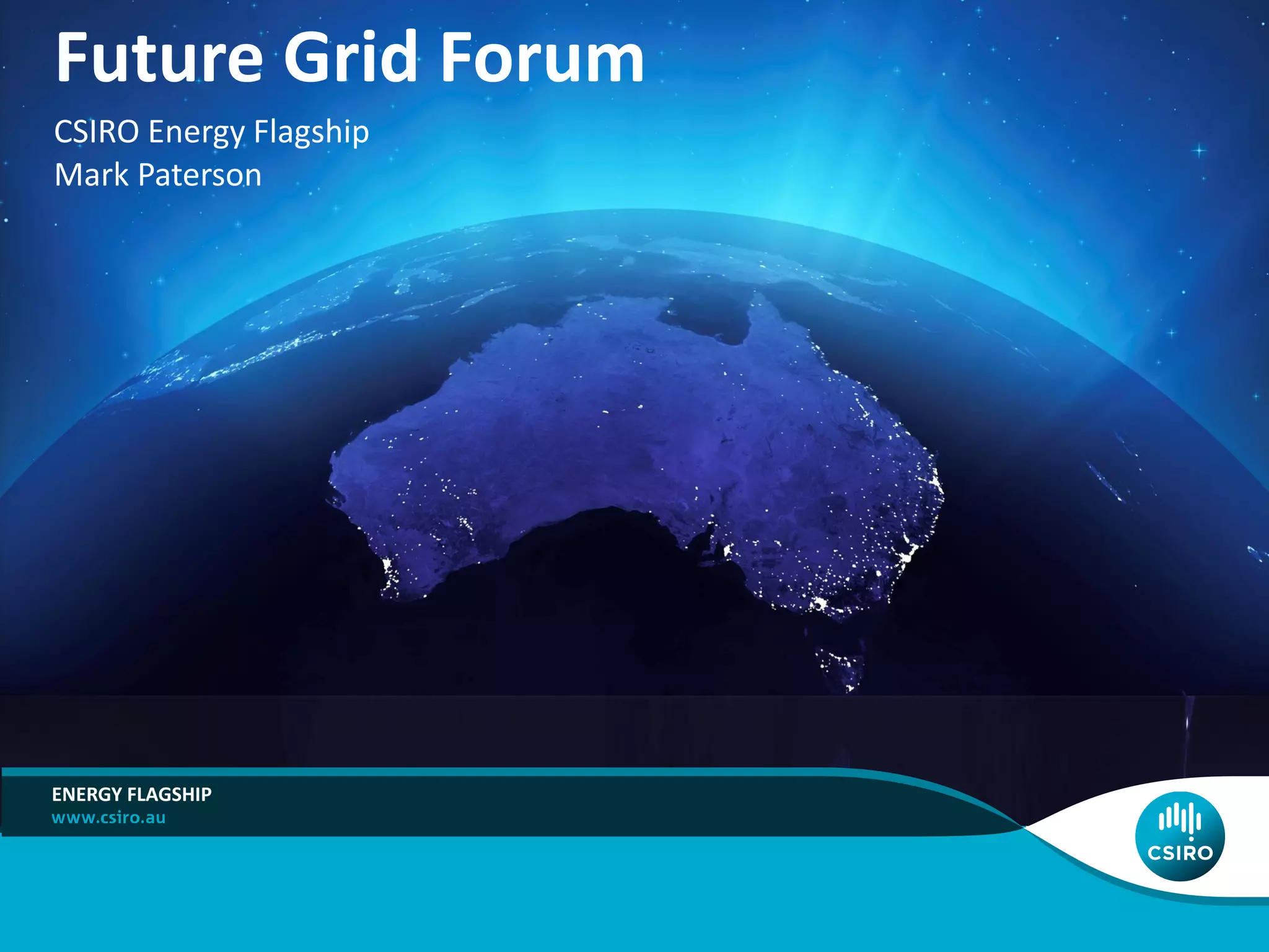 This document discusses scenarios for Australia's electricity grid in 2050 and the transition underway. It outlines four scenarios: 1) modest renewable adoption with "set and forget" demand management; 2) widespread distributed energy with consumers selling excess power; 3) many consumers disconnecting from the grid with distributed generation and storage; and 4) large-scale renewable generation and storage with modest distributed resources. It argues the transition from centralized fossil fuels to decentralized renewables will profoundly change the electricity system and requires new regulatory, business and technology solutions to enable this transition over the next decade and achieve net-zero emissions by 2050.