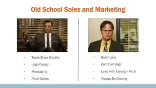 The document discusses how sales teams need to adapt to inbound leads. It suggests that outbound sales techniques of constantly pitching and closing will not work for inbound leads generated through content and online engagement. Instead, it advocates that salespeople should monitor prospects' online behavior, engage with them through relevant content instead of pitches, help prospects as thought leaders rather than just closing deals, and focus on understanding prospects' needs to provide solutions. The document promotes transforming sales processes to connect with leads through insightful online conversations rather than traditional outbound calls focused on closing.