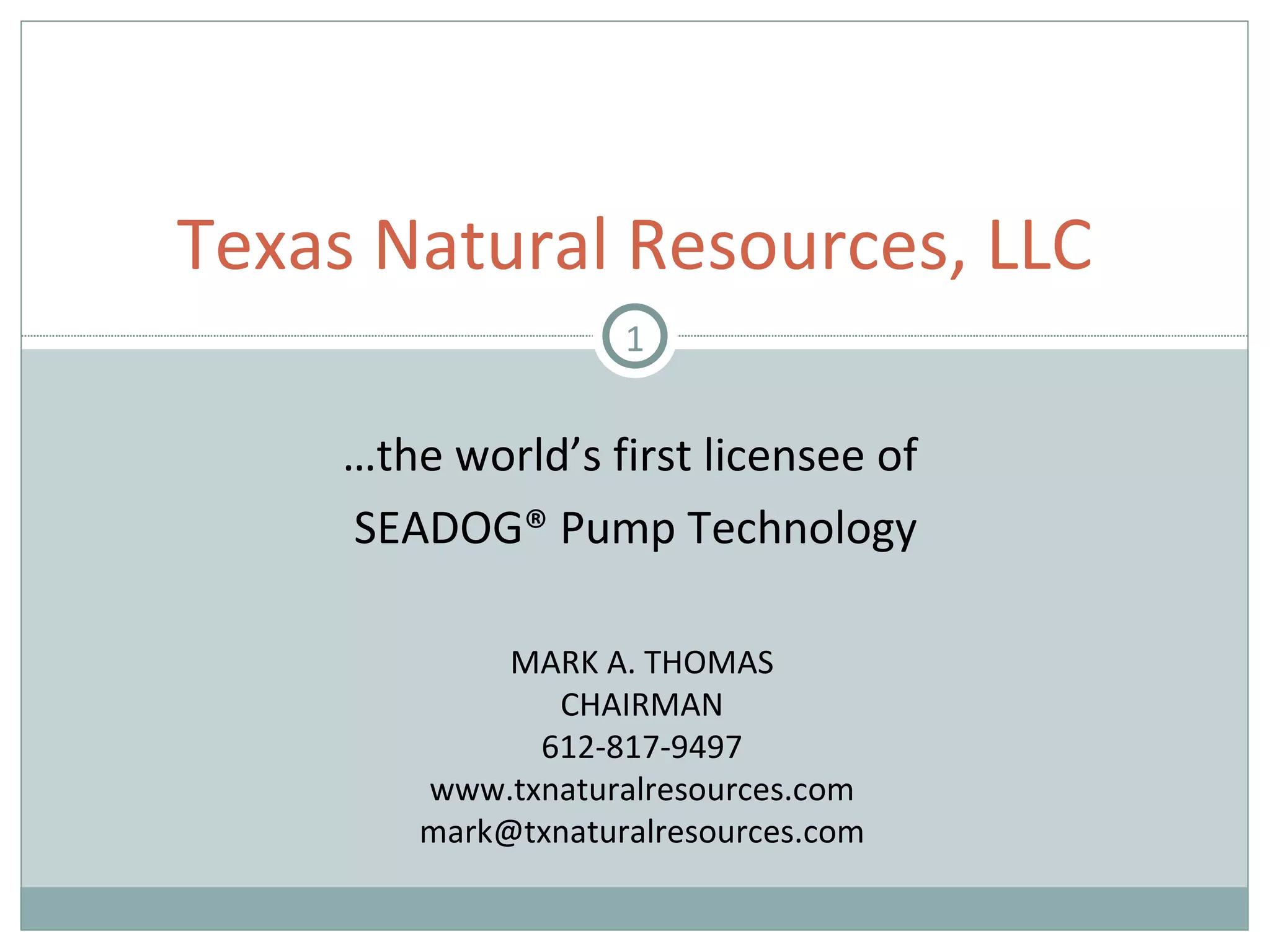 Texas Natural Resources is developing the SEADOG® Pump wave energy technology. It has undergone successful sea trials and is a patented wave energy conversion device that uses the rising and falling of a buoyancy block to pump water and generate electricity via hydro turbines. The company aims to deploy an initial commercial demonstration project off the coast of Freeport, Texas to showcase the technology and attract strategic partners for further development and licensing.
