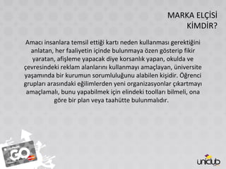 Marka Elçisi,sorumlu olduğu markayı kampüs yaşantısına, yapılan
