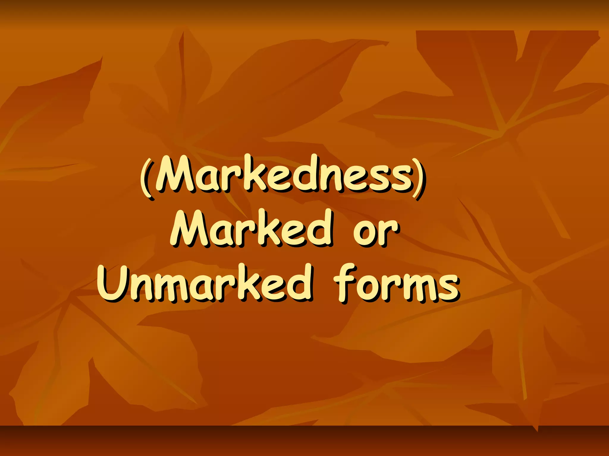 Markedness refers to the relationship between linguistic elements where one element is more distinctively marked than the other unmarked element. An unmarked element is more general, frequent, and simpler, lacking additional morphological markers. A marked element contains extra affixes or structure that make it more specific or complex. Common examples include singular versus plural nouns, where the plural contains the additional marking of -s, and nouns like lion versus lioness, where the female form is marked with an additional affix. The unmarked form is generally the default interpretation in context.
