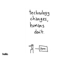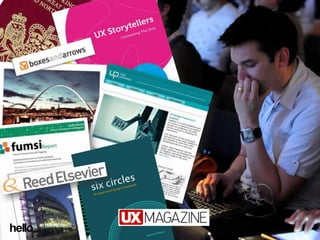 The document outlines the agenda for a presentation by James Kelway, focusing on the overall user experience, UX in applications, and social media. It emphasizes the importance of placing people at the center of business and user needs to inspire innovation. The content distinguishes between user-centered design and user-led design.