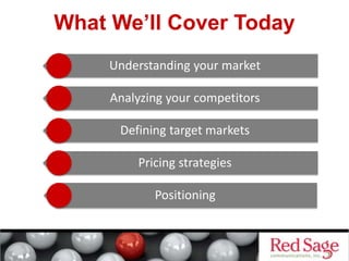 The document outlines key strategies for conducting market analysis, including understanding market dynamics, analyzing competitors, defining target markets, and developing pricing strategies. It emphasizes the importance of thorough research, both primary and secondary, to identify and prioritize target markets, as well as the need for continuous adaptation based on market feedback and industry trends. Additionally, it highlights the necessity of clear differentiation in branding and positioning to stand out in a competitive landscape.