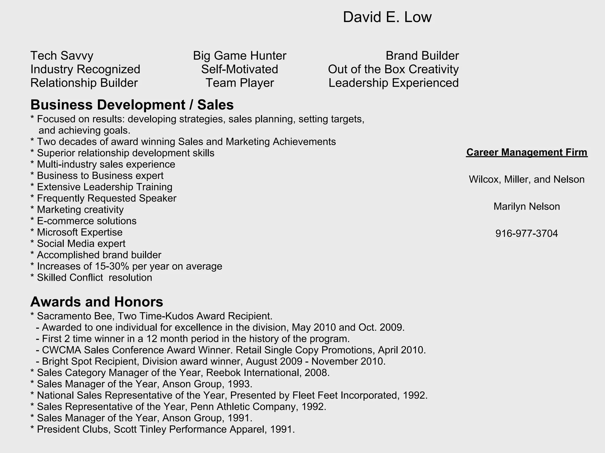 David E. Low is an experienced business development and sales professional with over 20 years of experience building brands, developing relationships, and achieving sales goals and targets through strategic planning. He has received numerous awards for his sales and marketing achievements across multiple industries and is a frequent requested speaker known for his out-of-the-box creativity, leadership skills, and social media and e-commerce expertise.