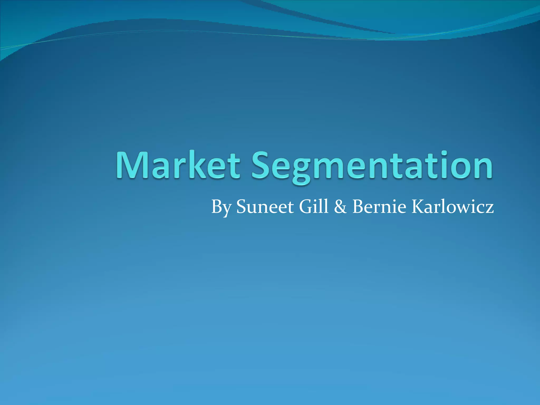 Market segmentation involves grouping customers into segments based on similarities to better target them. It is the first of three key steps in developing a marketing strategy along with targeting and positioning. Effective segmentation criteria include segments being identifiable, accessible, sizable, profitable, with unique needs and durable over time. Segmentation allows companies to tailor products and marketing approaches to specific groups. Common bases for segmentation include geographic, demographic, psychographic and behavioral factors.