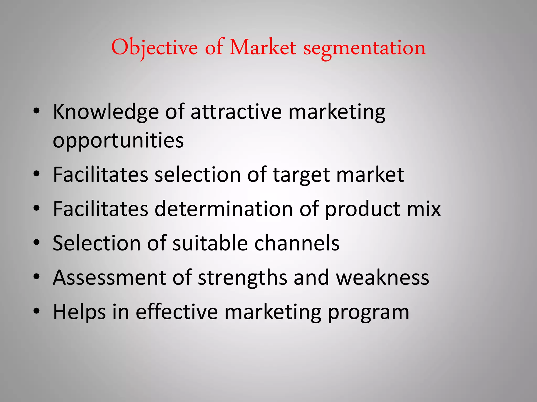 Market segmentation involves dividing a market into subgroups with similar characteristics that influence demand. The objectives of market segmentation are to identify attractive marketing opportunities, select target markets, determine product mix, select channels, and develop effective marketing programs. The key steps in market segmentation are identifying segments, developing profiles, evaluating segments, selecting targets, and developing positioning and marketing plans. Target marketing focuses marketing efforts on specific segments likely to purchase products and services.