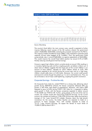 The document discusses the attractiveness of emerging markets like China and India for investments after recent corrections. It notes that valuations in countries like China have become compelling, with its P/E ratio of 13x and market cap to GDP ratio of 0.6x given that growth will remain higher than developed economies. It argues the European bailout package and low interest rates globally will drive funds back into high growth emerging markets like China and India. It highlights India's growth is driven more by domestic factors than external ones, and expects the economy to grow 8-9% in the coming fiscal year.