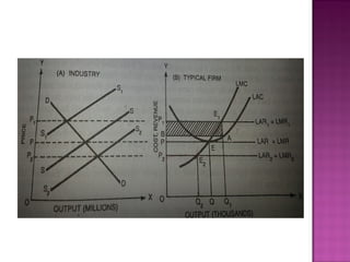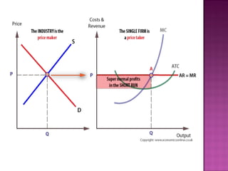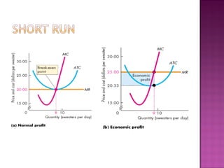 - In the long run, firms enter and exit the industry to earn normal profits, resulting in economic equilibrium with price equal to minimum average cost for all firms.