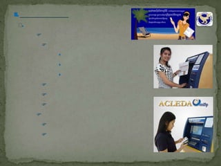 This document outlines the mission and activities of the National University of Management in Cambodia. It discusses the university's goals of cultivating management expertise, providing quality education, and serving society. It also lists some of the university's degree programs and notes that it works closely with various partners from the public and private sectors.