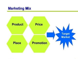 This document discusses marketing and the marketing mix model. It defines marketing and explores various elements of the marketing environment including economic, legal, political, demographic, competitive, cultural, institutional, and technological factors. It then explains the marketing mix model using the four Ps - product, price, place, and promotion. Specific questions are provided for each P to help define marketing strategies. The document also discusses tools and instruments used for tourism marketing, including various forms of advertising, public relations, trade shows, and word-of-mouth promotion.