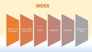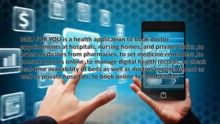 The document provides an overview and analysis of developing a mobile health app. It discusses conducting market research and analyzing competitors, customers, and collaborators. The goal is to provide services like online doctor appointments, prescription refills, and hospital bed availability. Sections cover situation analysis, target customers, value propositions, product details, pricing, distribution channels, and a timeline for infrastructure and tasks. The analysis aims to make healthcare more accessible while gaining a market share.