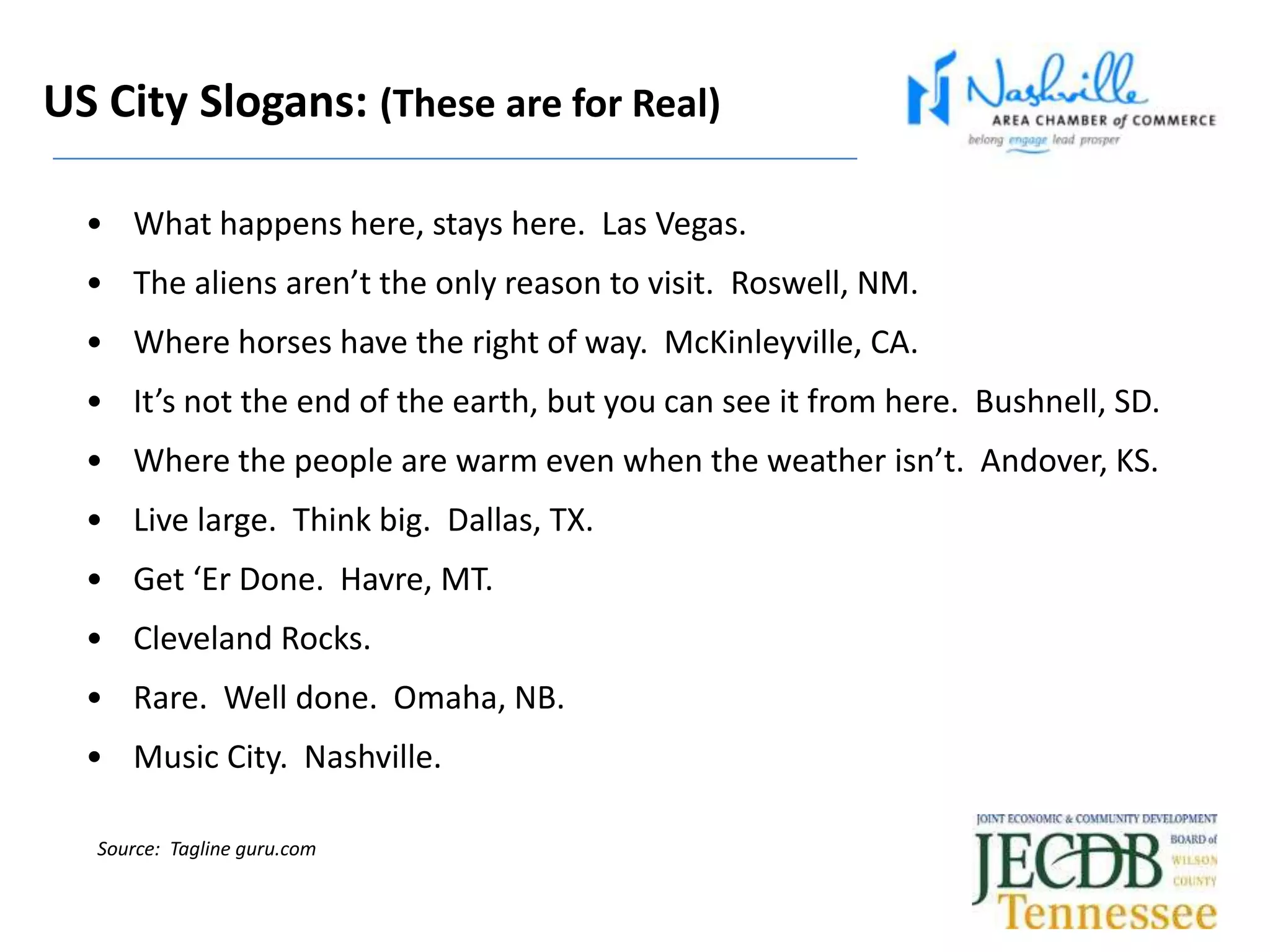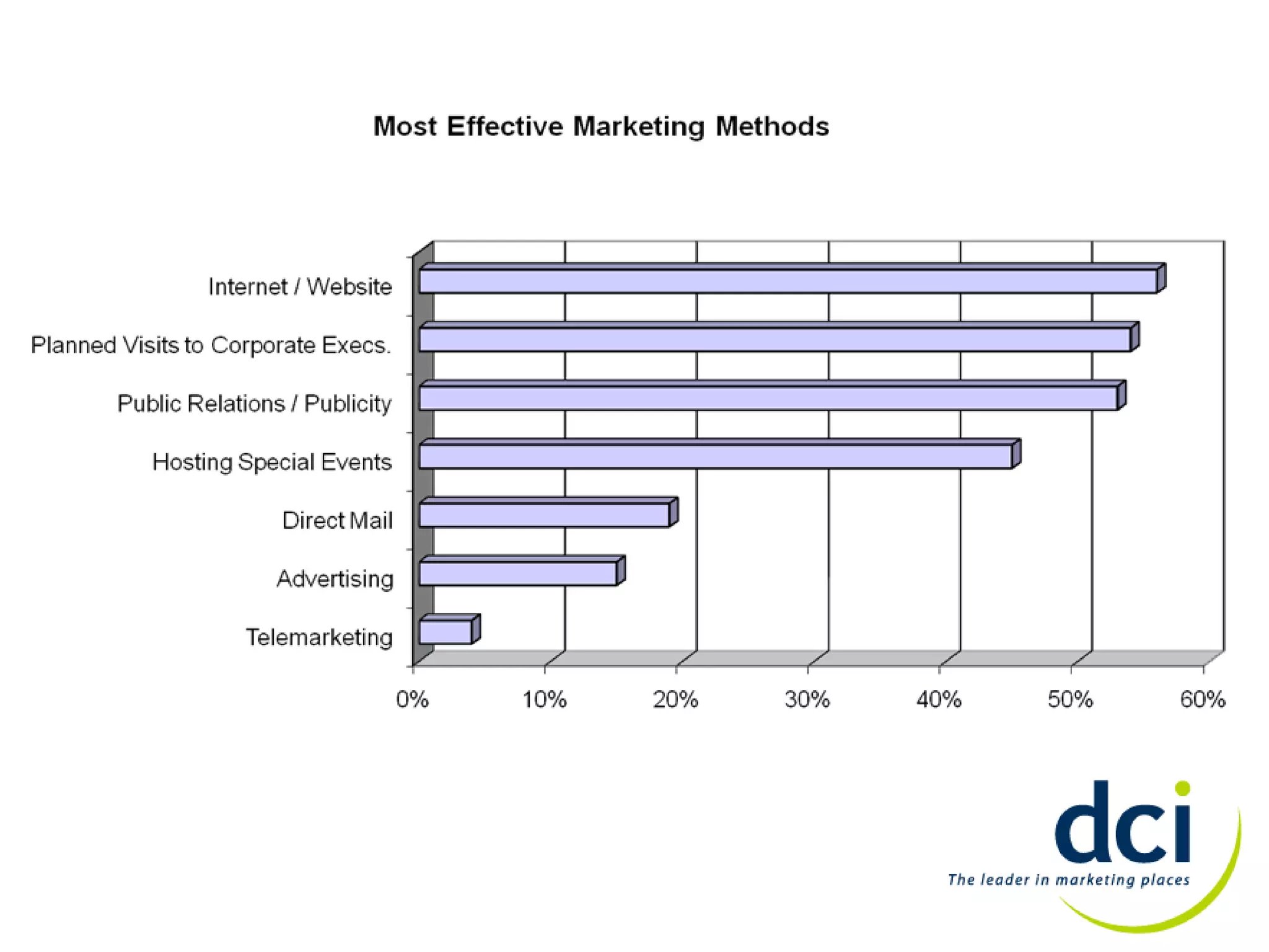 This document discusses marketing strategies for economic development organizations. It emphasizes the importance of research, targeting key audiences like relocation consultants, developing a strong brand, and using various marketing methods. These include social media, direct mail, events, and peer-to-peer marketing. The document stresses having marketing materials ready before spending on outward marketing and measuring goals and objectives to track performance.