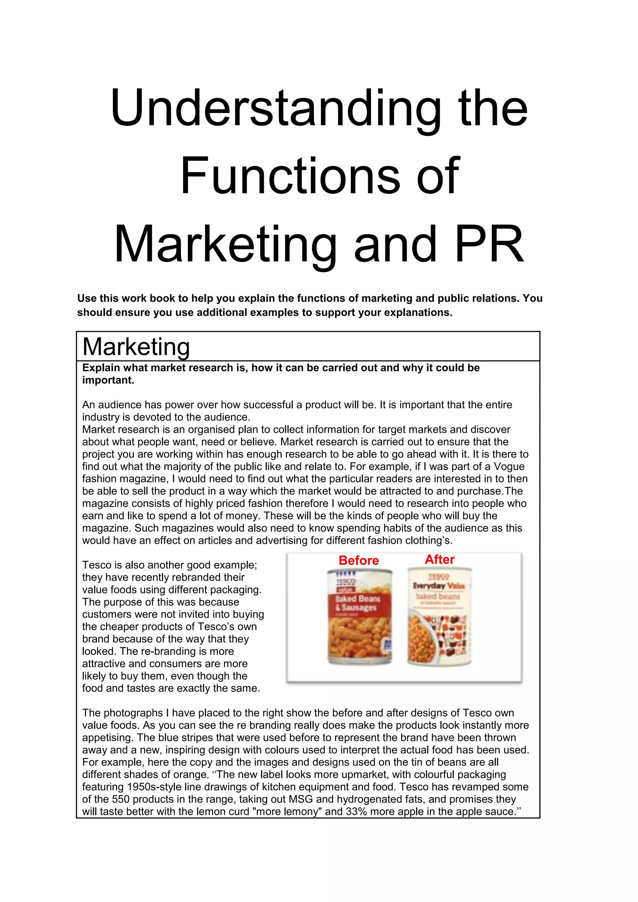 Marketing and PR functions involve market research, analysis, and promotion strategies. Market research collects information on target audiences through quantitative and qualitative methods to understand consumer wants. Market analysis interprets this research to identify market size, trends, and opportunities. Effective promotion strategies include advertising, branding, and events to raise product awareness and influence consumer purchasing.