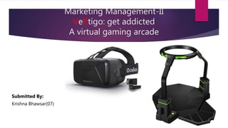 VeRtigo VR Gaming Centre is a proposed virtual reality gaming arcade that would be the first of its kind in India. It aims to provide customers with a unique and immersive gaming experience through motion sensor technology in a computer generated virtual environment. The business plan discusses conducting market research to understand customer awareness, demand, preferences and spending habits to help target the right audience and position the arcade against direct competitors offering VR kits and indirect competitors like movies and television. An integrated marketing communications strategy would be developed to promote the arcade's value proposition of being a first, providing high quality experiences while prioritizing customer happiness.