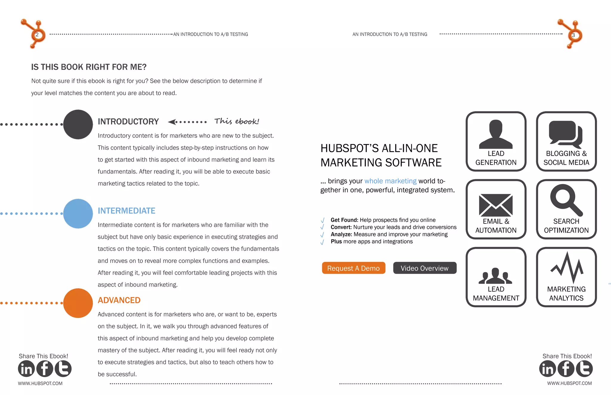 This document provides an introduction to using A/B testing for marketing optimization. It discusses how testing different marketing variables can help identify higher-performing options to improve metrics like lead generation. While many marketers conduct tests, only 40% validate results through statistical analysis. Properly analyzing A/B testing data can significantly increase leads and provide a competitive advantage over companies not using this technique. The document recommends testing landing pages, emails, calls-to-action and other variables to maximize conversions.
