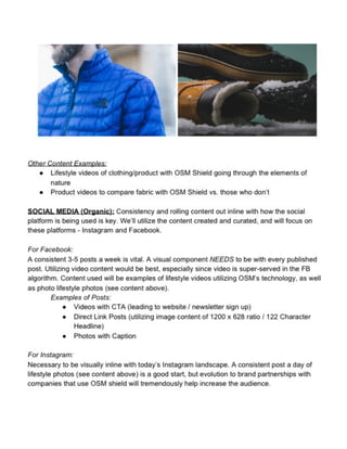 The proposal outlines a three step process: 1) an initial proposal of their approach, 2) communication from OSM Shield on the product description and sample photos, and 3) finalizing a budget and expanding on the strategic B2B approach and brand recognition.