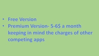 This marketing plan document summarizes a proposed fitness app for the Indian market. It notes that rising incomes in India will increase consumer spending power and lead to obesity issues, creating a need for a fitness app. The app will offer both free and premium features like calorie tracking, sleep monitoring, diet charts, and live trainer classes. The implementation plan outlines 4 phases: app testing and launch, obtaining customer feedback and updates, pitching to and contracting with clients, and maintaining financial performance while expanding to new cities. The document identifies target consumers, key app features, a value proposition, and core competencies around health experts, data analysis, and healthcare partnerships.