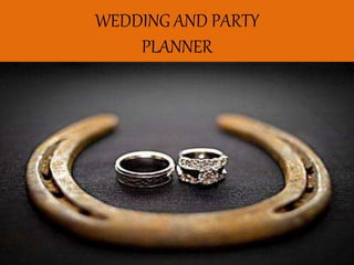 This document outlines a marketing plan for a wedding and party planning Android app. The plan discusses conducting a situation analysis of competitors and the target market. The goal is to build the app's brand and attract consumers with an easy way to find products. The strategy involves targeting internet users, young people, and educational institutions. Tactics include collaborating with suppliers, using social media for promotion, and evaluating the app's performance based on downloads and reviews.