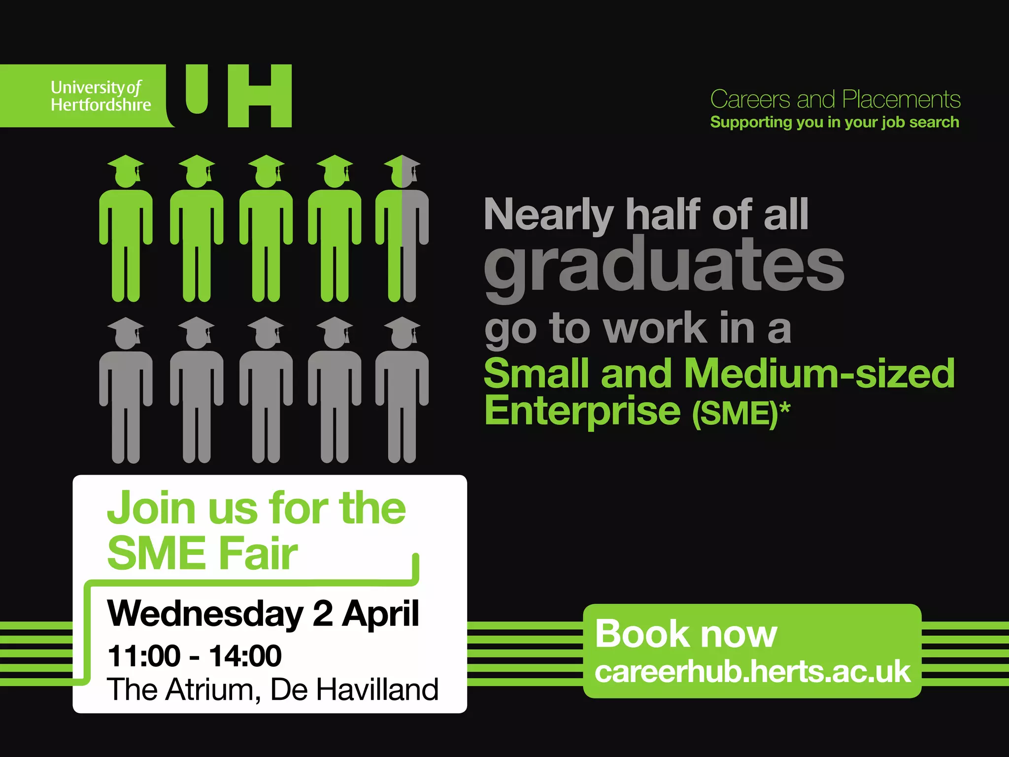 The document outlines a series of workshops and events related to recruitment and placements at the university, including effective CV writing, interview preparation, and guidance for specific job placements and opportunities with employers such as Nissan and Disney. It highlights the importance of booking these sessions through the CareerHub website and emphasizes the limited availability for certain group discussions. Additionally, it mentions external physics events and encourages students to utilize online appointment bookings for career advice and support.