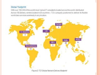 1) Tata Consultancy Services (TCS) is a global IT services company and India's largest exporter, with revenues of $7.21 billion in 2011.