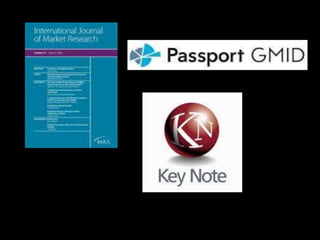 This document provides an overview of library resources for marketing research at Middlesex University, including specialized librarians, services, and materials. It outlines essential and recommended textbooks, and how to use the library catalog and place requests. It also describes marketing databases like Keynotes, Business Source Complete, and Passport GMID that contain market reports, company profiles, and journal articles. Instructions are provided for searching within databases and across databases using Summon.