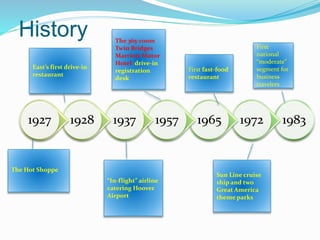 This document contains information about Marriott International's hotel brands, markets, and performance. It discusses Marriott's portfolio of 30 hotel brands targeting different market segments. It also analyzes Marriott's global presence, financial performance from 2008-2012, and strategies for working with partners and developing new markets. Recommendations are provided around developing new express brands and markets in developing countries and business travelers.