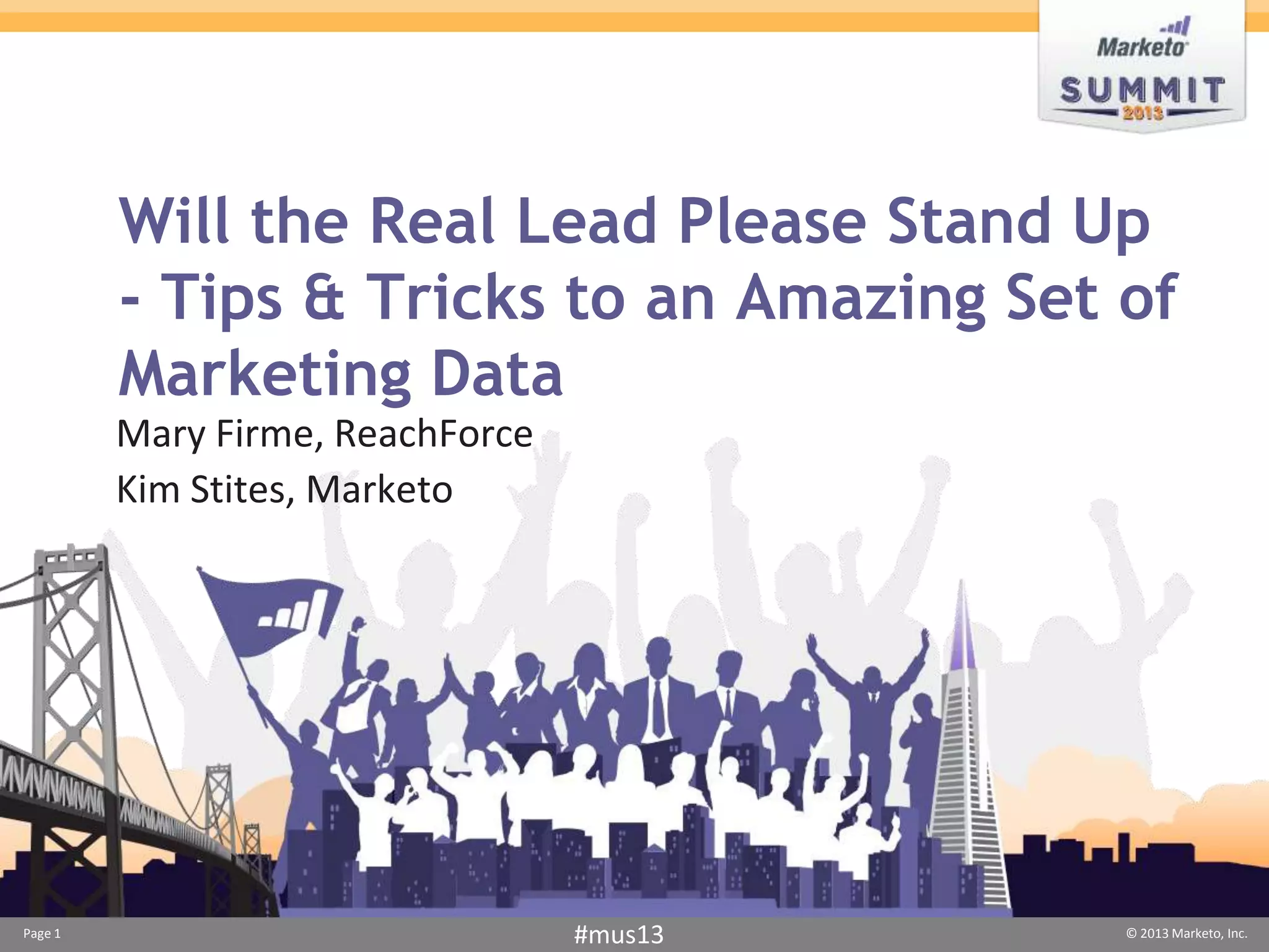 The document provides strategies for improving collaboration between sales and marketing through effective data management and preparation. It emphasizes the importance of clear definitions, communication, and data organization to enhance marketing automation and lead alignment. Tips include defining lead and opportunity statuses, tracking engagement, and ensuring data cleanliness to drive successful marketing campaigns.
