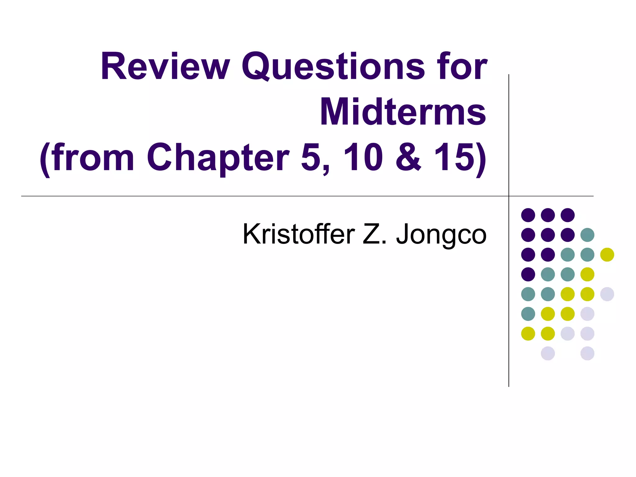 Markma V57 Midterm exam review questions for chapters 5, 10,15