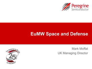 This document summarizes Peregrine Semiconductor's capabilities in solving RF challenges. It discusses how Peregrine has pioneered the use of CMOS SOI technology for RF applications, serving multiple markets. The document also highlights Peregrine's recent development of an X-Band core chip integrating RF, analog, and digital functions on a single die using its UltraCMOS technology, showcasing performance on par with existing discrete solutions.