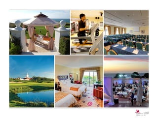 The document discusses customer testimonials and event experiences that praise the staff and service provided at the Marriott Praia d'El Rey hotel. It summarizes three events that were held at the hotel - a December event for Cushman & Wakefield with 80 attendees, a September event for Deloitte with 150 attendees, and a February cardiology event by Get Done agency with 150 attendees.